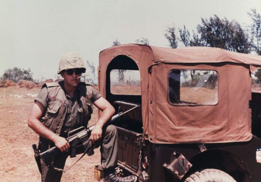 Marko (on left) about to travel with Marines from China Beach to Chu Lai, South Vietnam