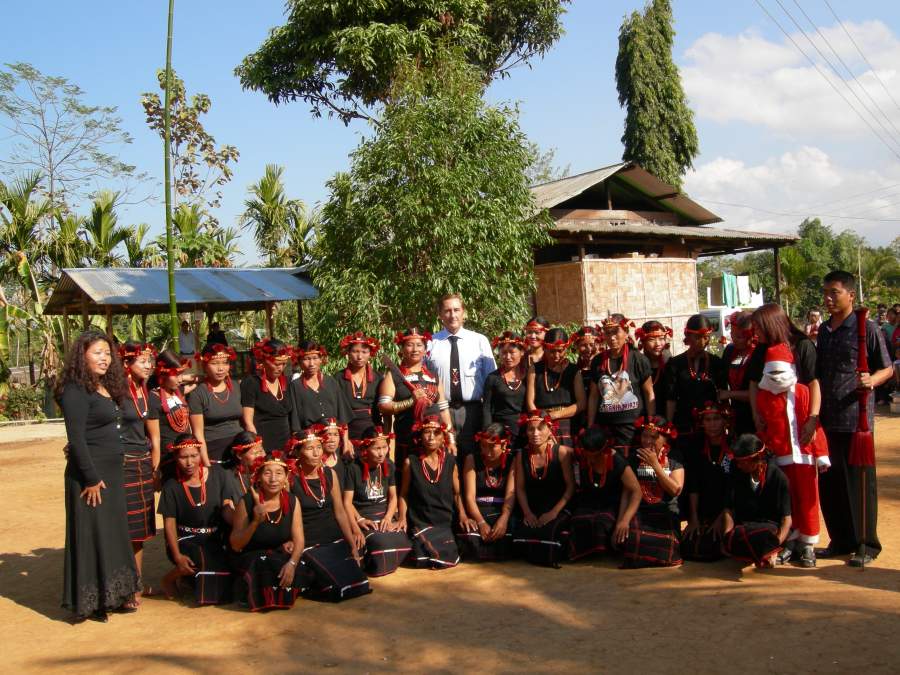 Marko with village dancers at Christmas celebration 2007 (Santa on right)